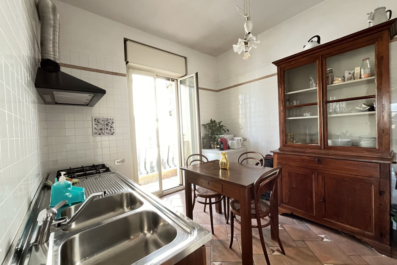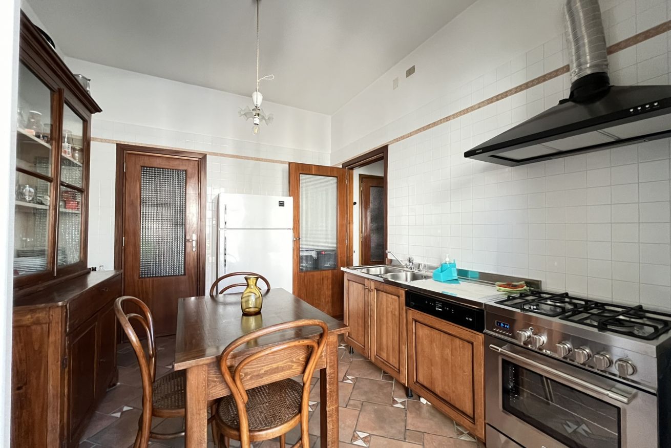 La cucina con balcone è completamente attrezzata con arredamento tradizionale, 4 fuochi, forno ventilato e cappa aspirante, frigo e freezer, lavastoviglie, microonde, tostapane, bollitore, macchina per il caffè a capsule.